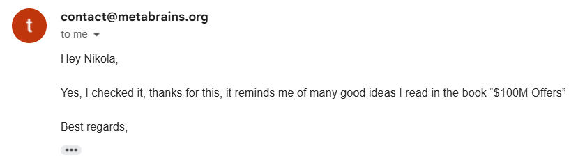 “Wow, thanks for the feedback Nikola! Some great feedback in here, you clearly know your stuff :)”